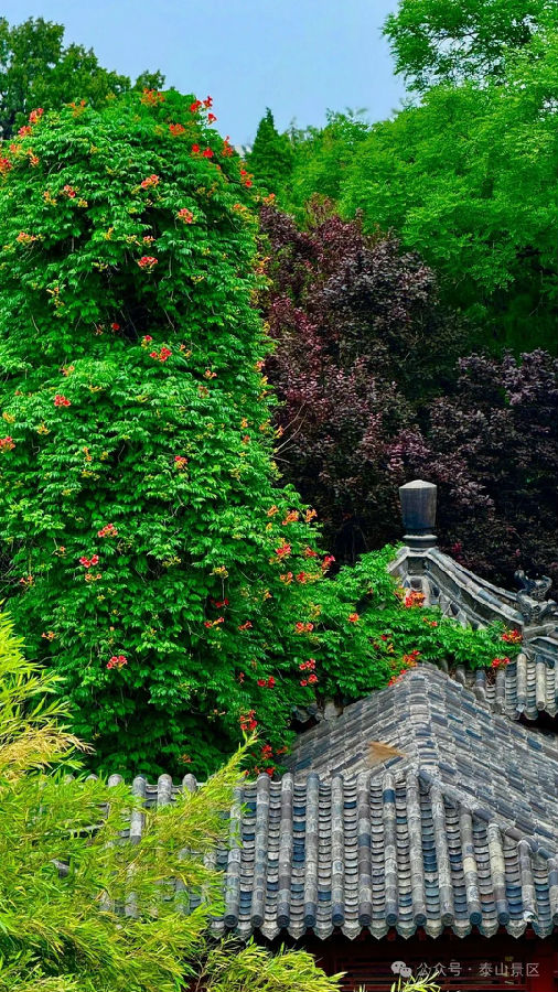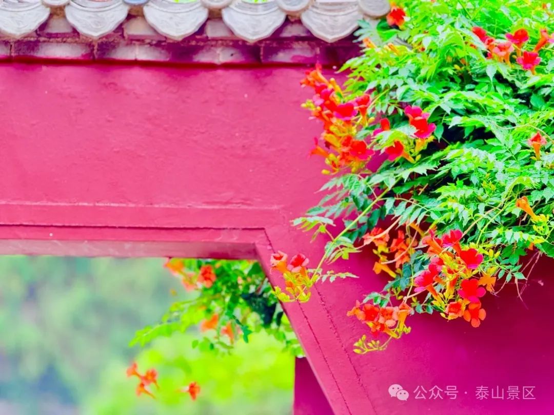 初夏的岱庙,别有一番韵味。往昔争奇斗艳的百花,大多已渐渐停歇,而凌霄花却在此时盛大登场,奏响属于自己的生命之歌。
