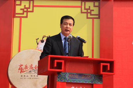 谭业刚在致辞中指出:泰山东岳庙会是泰山最具生命力的民俗文化景观之一,也是名山大川与俗信活动融合发展的瑰丽景象,被列入国家级非物质文化遗产名录。东岳庙会从独具魅力的民间曲艺,到异彩纷呈的游艺竞技,从祈福迎祥的拜山仪式,到泰山封禅的仿古演出,全方位展示了泰山几千年的文化积淀。近年来,泰山景区按照打响“登泰山 保平安”这一品牌,做大三个产品、形成三大产业的发展思路,不断加强泰山东岳庙会的保护、传承与利用,并以挖掘、弘扬、展示、传承泰山文化为核心,创新举办形式,提升活动品位,拓展合作领域,努力把泰山办成海峡两岸及国际具有特殊影响力的祈福圣地,取得了显著的社会和经济效益。本届庙会紧紧围绕泰安市委、市政府“推进富民强市、建设幸福泰安”战略部署和发挥泰山在旅游业中龙头带动作用的要求,在挖掘提升传统优势项目的基础上,更加突出“平安、和谐、纳福”主旋律,推出了“中韩民俗文化周”交流活动,将原汁原味的韩国“象帽舞”“扇子舞”表演、宫廷服饰展、传统纸艺展等韩国民间民俗、文化艺术、特色产品体验项目引入庙会,必将进一步推动中韩两国民间交流和文化互动;策划了海峡两岸民俗文化互动、中韩佛教文化交流等研讨、合作活动,积极推进文化与旅游、民俗与商贸的有机融合。我们期待通过本届庙会的创新拓展,能够为弘扬泰山平安文化、建设泰山国际知名遗产地和旅游目的地注入新的活力。