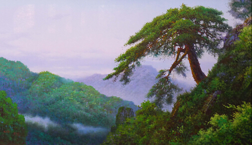 朝鲜油画以写实著称,其画风很容易被观者所认知接受。泰山在朝鲜民众中也享有较高的知名度。朝鲜艺术家们凭着对艺术一贯的执着,用画笔渲染着他们心中的泰山。一幅幅优秀的作品中展示着他们对于泰山的感受和审美。其作品如一股清新的暖风扑面而来,以其真挚浓郁的热情,庄重肃穆的壮阔气势,深深震撼着观者的心。