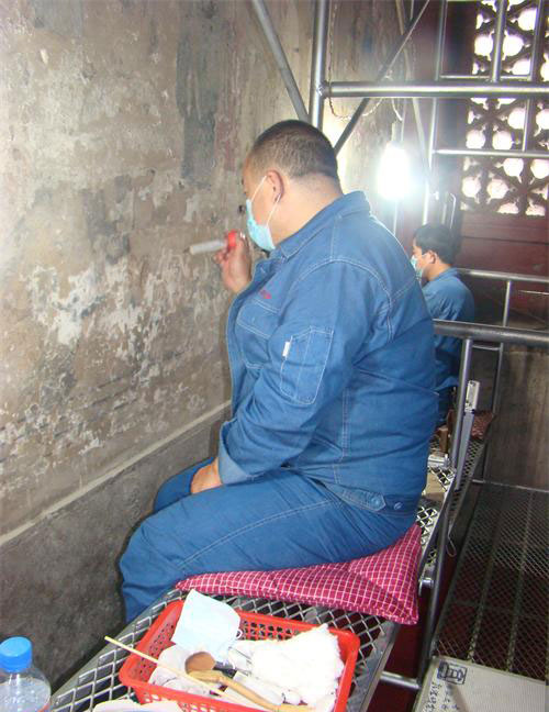 为保护这一珍贵的文化遗产,2010年起我馆对国内壁画修复界具备一级修复资质的单位进行了考察了解,最终选定了开展壁画修复工作最早,修复经验丰富的敦煌研究院,做为天贶殿壁画修复保护方案的设计方和修复工作的实施方。它拥有国家文物局颁发的文物保护工程施工一级资质,是我国目前在古代壁画保护领域最具实力的专业技术队伍之一。文保中心自成立以来,先后在甘肃、浙江、宁夏、河南、新疆、山西等地的全国重点文物保护单位进行壁画保护修复工程,目前完成的壁画保护工程项目有敦煌莫高窟部分洞窟壁画保护、西藏布达拉宫壁画保护、浙江杭州凤凰寺壁画保护等,积累了丰富的经验。