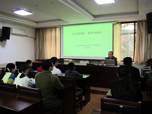 设立“世界地球日”是一项世界性的环境保护活动,旨在唤起人类爱护地球、保护家园的意识,促进资源开发与环境保护的协调发展,进而改善地球的整体环境。为搞好这次主题宣传活动,我馆在岱庙北门悬挂宣传标语横幅,突出地球日主题;在地质博物馆和南北门发放资料,向市民和游客宣传地球资源现状和防止地质灾害常识;邀请山东省第五地质矿产勘查院周绍智教授向来自泰安六中的学生及家长、山东农业大学青年志愿者们讲授了题为“认识地球,爱护地球!”的科学普及课,并一同观看了第46个世界地球日专题宣传片,了解了目前我国资源现状和利用的紧迫形势。随后,大家兴致勃勃参观了泰山地质公园博物馆,更直观地、通俗地了解认识地球和泰山地质遗迹。