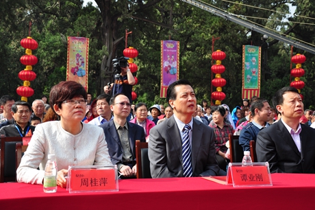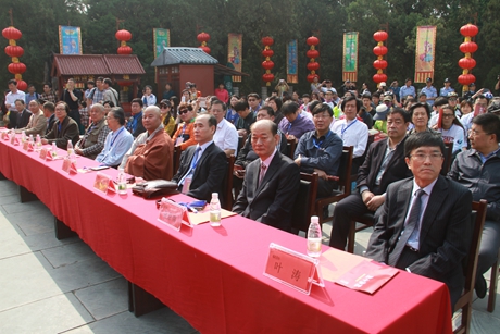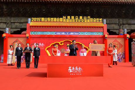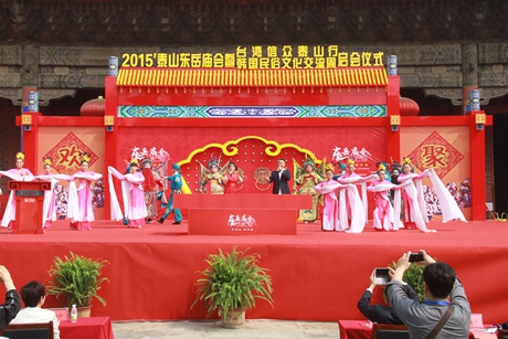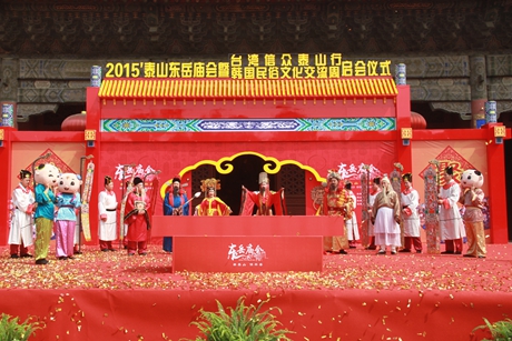 5月3日上午,2015'泰山东岳庙会暨台湾信众泰山行、韩国民俗文化交流周启会仪式在岱庙天贶殿大露台隆重举行。泰安市委常委、副市长周桂萍,泰山景区党工委书记谭业刚,泰安市政府办公室副主任葛宝文,市直相关部门负责人出席活动仪式;中国民俗学会副会长兼秘书长、中国社会科学院世界宗教研究所研究员、博士生导师叶涛,国际亚细亚民俗学会韩国会长金京南,韩国文化财厅、韩国传统文化大学教育学院院长柳春圭,台湾善化东岳殿主委尤耿村,台湾信众参访团、韩国民俗文化交流团、淄博博山区大桥村香社团、泰安梆子剧团等应邀嘉宾,以及中央、省市各级媒体记者参加启会仪式相关活动。