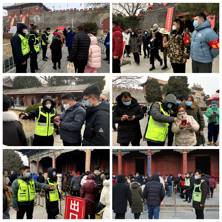 大年初二,岱庙景区工作人员继续严格按照假日值班方案坚守岗位。以“视游客为亲人”的服务理念,热情帮助游客扫码预约、做好“南进北出”的劝导工作,耐心解答游客咨询;在天贶殿、遥参亭重点部位加强人员安全、游览秩序的维护;增加保洁力量,做到随时保洁。全体员工用实际行动诠释着岱庙工作者的热情,践行着岱庙工作者的初心和使命,保障了游客在岱庙度过一个平安、祥和、欢乐的假期。
