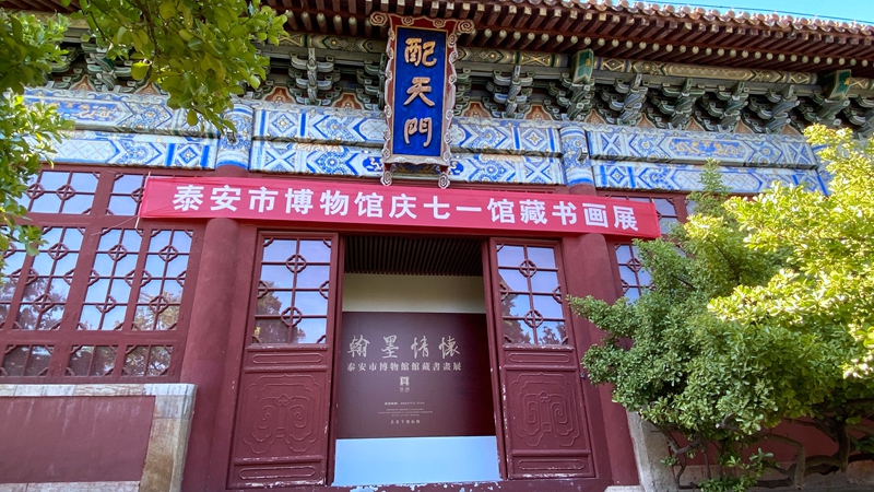 为庆祝中国共产党成立102周年,泰安市博物馆在岱庙配天门举办了“翰墨情怀——泰安市博物馆馆藏书画展”。