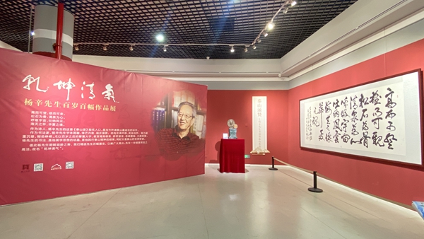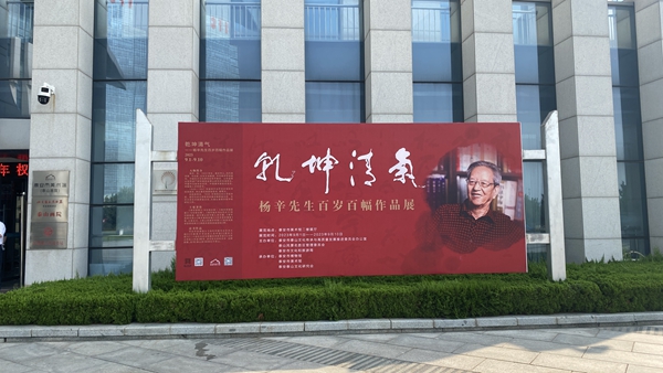 登泰山而悟生,赏荷花而好洁。因先生一世倾慕荷花之高洁,本次展览定名为“乾坤清气”。展览分为《泰山颂赞》《翰墨抒怀》《一字乾坤》三部分。杨辛先生的书法,是他美学思想的结晶,是他践行泰山精神的成果。字体圆融,端庄雍雅;结构丰满平稳,疾徐自然;笔力凝重沉雄,刚劲峥嵘。尤以百岁之后的擘窠大字,愈发笔势雄奇,矫若游龙,恣肆酣畅,力透纸背,是泰山文化在当代的发展与延续。此次展览展至9月10日。