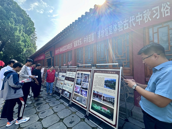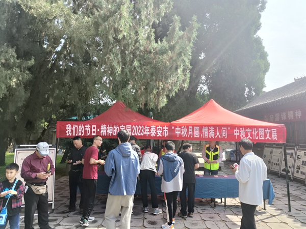 “中秋月圆 情满人间”中秋文化图文展以中秋由来、岱庙介绍、文物推介等15块图文展板,向游客和市民展示中秋民俗、岱庙景点、博物馆藏品、古村乡愁博物馆以及体现铸牢中华民族共同体意识的珍贵文物藏品。
