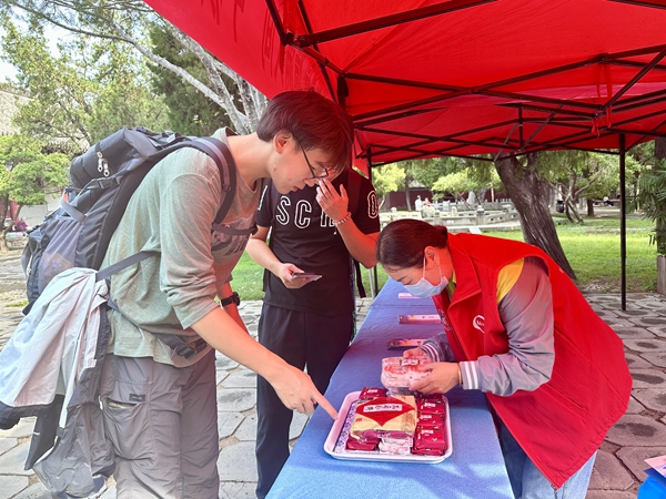 扫码送月饼活动非常热闹,通过扫码关注岱庙微信公众号,向更多公众推送旅游资讯,提升景区吸引力、影响力,游客关注微信公众号后,便能领取一份精美月饼,收到一份来自旅游景点的节日祝福。