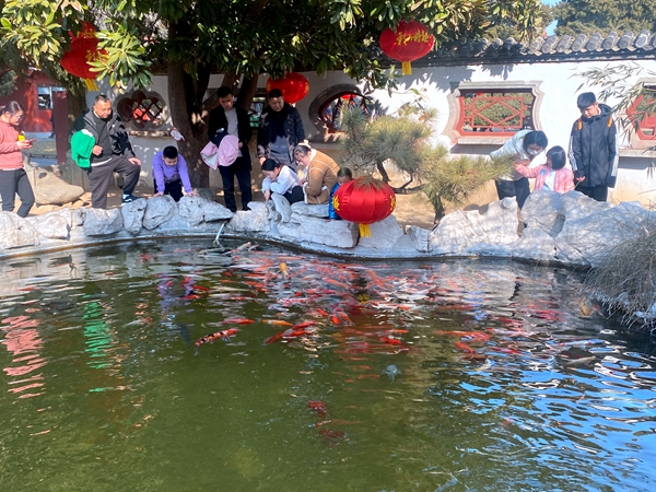 灵动的鱼儿与游人和谐互动,勾勒出一幅幅生动的画面,为这个新年增添了浓厚的节日氛围。这场别开生面的新春体验,让游客们在欣赏美景的同时,也感受到了新年的祝福与喜庆。