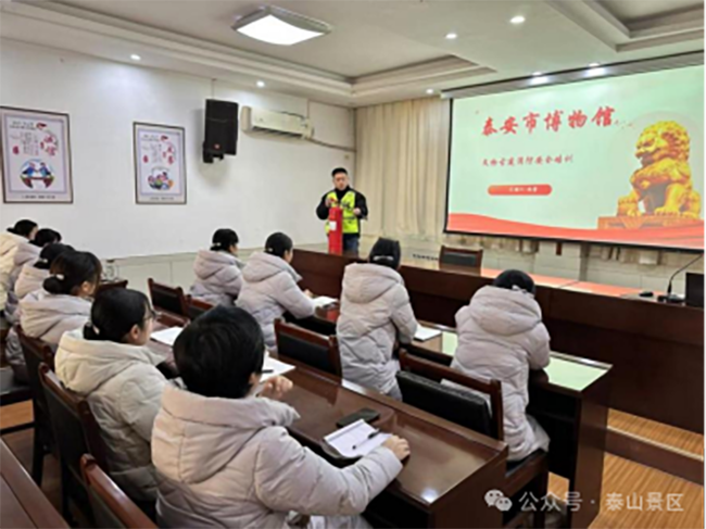 珍爱文化遗产,筑牢安全防线。1月20日,为增强员工文物古建安全防范意识,提高应对火灾等突发事件的能力,泰安市博物馆组织讲解员、安保员等一线员工进行了文物古建筑消防安全专项培训。通过系统学习和实际操作演练,进一步增强了一线人员消防责任意识,提升了消防安全知识技能,为保障文物古建安全构筑起一道坚实的安全防线。