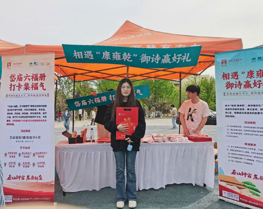 为做好“泰山+”文章,进一步传承和弘扬泰山、岱庙历史文化,市博物馆立足博物馆社教职能精心策划,联合泰山学院共同承办第二十三届“校园之春”大学生科技文化艺术节暨“登书山·览岱庙· 承文脉”书香校园系列活动。通过背诵古诗、打卡集福、拓印体验等让青年学子近距离感受岱庙的文化底蕴,增强文化自信,助力传统文化薪火相传。