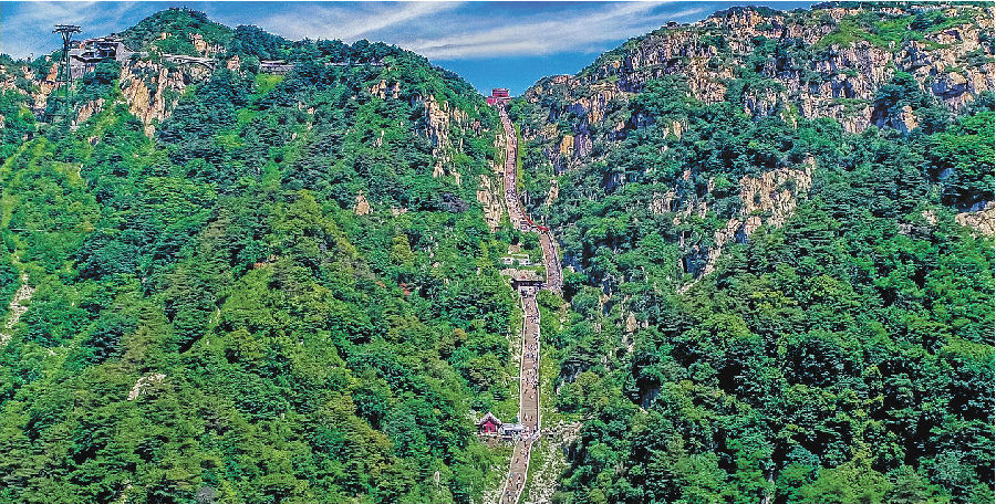 记者田阳 通讯员王其勇报道 远眺泰山南天门,满目翠绿。