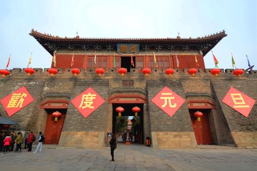 2016新年第一天,岱庙南北城墙上彩旗招展,红灯高悬,一片喜庆吉祥的气氛。在这举国欢庆的日子里,岱庙也开展各项活动喜迎佳节。