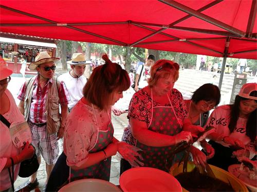 在阁老池东侧,“你做•我学•包粽子”活动深受孩子们的喜爱,外国游客也被现场的热情吸引,加入到包粽子的行列,一招一式学的极其认真。大家都从中感受到了浓郁的节俗氛围。