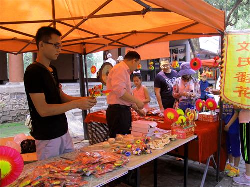 仁安门的端午市,以翻花、传统腰鼓等端午节为主题的手工艺特色产品摊位前吸引了游客驻足观看购买。