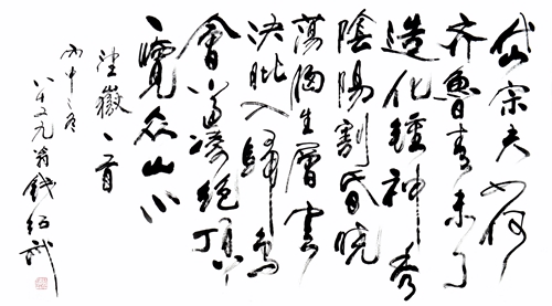 钱绍武,我国著名的雕塑家、书法家、画家,有“中国雕塑第一人”的称号。主要书法作品《望岳》诗9米×3米,曾悬挂于中共中央政治局会议厅。《泰山颂》10米×3米长期挂于中央政治局会议厅壁,该诗作者为北大教授杨辛先生,诗之后两句为钱先生所改。
