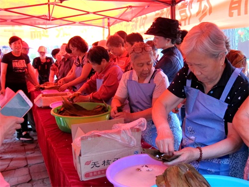 阁老池旁弥漫着粽叶的阵阵清香,一场热闹的包粽子大赛正在紧张进行着。包粽子高手们齐露手艺,熟练、快速的动作引来阵阵喝彩,来自泰安电视台的小记者们也不甘示弱,纷纷拿起粽叶一试身手,有模有样的学起来……传统文化的传承与弘扬通过活动慢慢渗入孩子心灵。