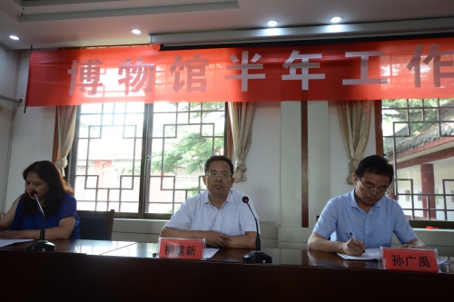 博物馆馆长柳建新做了上半年工作报告。今年上半年博物馆重点做了六个方面的工作:一是对管理机制进行了调整,理顺了管理关系,尽可能保障了员工的权力,为今后工作奠定基础。二是完成了东岳庙会和其他节庆活动。特别是东岳庙会走市场化运作的模式,取得良好效果。三是积极推进岱庙资源保护工程,完成避雷二期工程、地砖维护、汉柏院碑亭建设、白蚁防治等工作。四是按照“时间过半,完成任务过半”的要求,今年上半年基本完成与管委签的年增3%的任务,特别是与北京旅创公司的合作,真正实现了两位数的增长。五是推进创建文明城市工作,增加各类宣传牌,完成草坪补栽、环境提升、油漆彩画、经营房维修等多项工作。六是进一步加强了党的建设和作风建设。