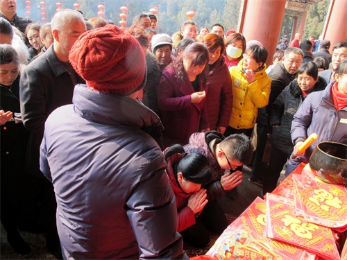 虔诚的香客为家人送上新年祝福