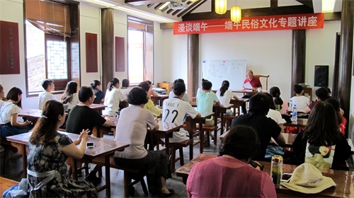 为了让大家了解掌握有关传统端午节风情习俗,举办了《端午文化习俗展》,通过端午由来、简介、习俗等12版面,让人们了解端午的民俗特色和民俗风情,并邀请泰山学者王玉林老师讲授《漫谈端午——端午民俗文化专题讲座》,通过王老师声情并茂、渊博的知识穿插,让大家进一步加深对端午习俗的学习,了解祖国灿烂的文化渊源。