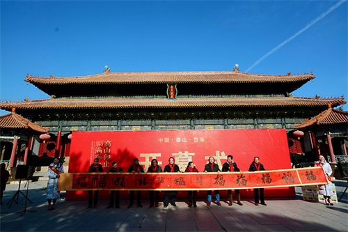 此次展览活动还邀请了参展艺术家共同书写百福长卷,从省会济南传递至泰山岱庙,以此开启泰山新春祈福活动。也由此开启“万福送万家”与“安心萝卜送温暖”活动。