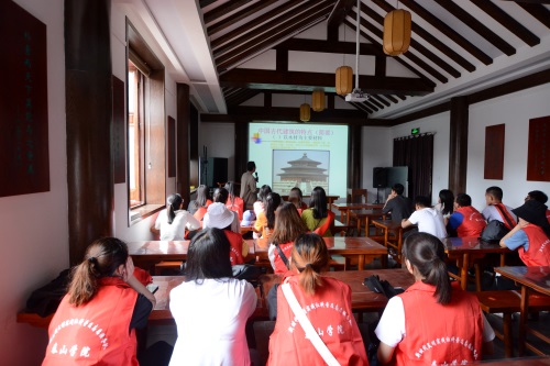 在岱庙信道堂,泰安市博物馆的业务专家为学生、市民举办了岱庙古建专题讲座,详解岱庙建筑的历史及其他相关知识。
