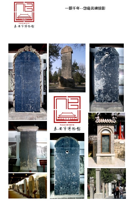 泰安市博物馆 精选了部分名碑石刻来体现泰山这座书法博物馆的独特魅力!岱庙,始建于汉代,是中国古代帝王供奉泰山神灵,举行祭祀大典的场所。总面积10万平方米,是泰山现存规模最大的古建筑群,主体建筑——天贶殿,创建于宋代,采用中国古代建筑最高规格营造,为中国古代三大宫殿式建筑之一。岱庙也是泰山历代碑刻较为集中之地,素有“岱庙碑林”之称,现有碑刻300余通,其书体流派纷呈,其内容丰富多彩。这些碑文或反映帝王封禅祭祀,或记载寺庙宫观创建沿革,亦或是帝王文人吟咏,漫步其间,既可得书法之趣妙,又可览历史之变迁。