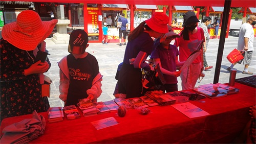文化和自然遗产专题版面展区,工作人员和志愿者向游客介绍了近几年岱庙景区在文物保护、陈列展览、社教宣传、节庆活动等方面取得的成果。并现场解答游客咨询,发放宣传册页。