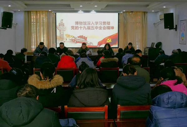 为深入学习贯彻党的十九届五中全会精神,传达市委宣讲团报告会重要内容,落实景区党工委关于组织开展党的十九届五中全会精神专题学习的要求,博物馆于12月8日下午召开专题学习会议,全体干部职工共同学习领会全会的重要内容与精神。