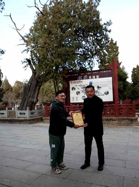 为进一步提高社会各界人士对岱庙古树名木的关注度,不断增强人们保护意识,满足公众参与意愿,泰安市博物馆于近日联合泰山森防站开展了“泰山古树名木供养挂牌”颁奖活动。活动为此次的供养人——泰安市捕快文化传媒有限公司设置了供养说明牌,颁发了泰山古树名木供养证书,并授予了“泰山绿色使者”奖杯。