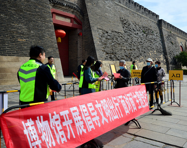 为加大活动宣传力度和宣传效果,博物馆利用岱庙官方微信发布了“清明节安全文明祭扫倡议书“,在南北门显示屏、游人中心循环播放宣传海报,印制文明出行和文明祭扫倡议书,组织部分党员和志愿者在岱庙南北入口处进行发放,通过与市民、游客交流互动,现场咨询解答,倡议广大游客和市民采用人文祭扫、网上祭祀、鲜花寄哀思等文明、环保、健康、安全的方式表达思念之情,引导大家在祭扫活动中移风易俗、树立文明健康的祭扫新风。同时宣传普及文明出行常识,传播文明出行理念,提高大家自觉遵守文明出行公约意识,营造了一个平安出行、文明和谐的旅游环境。