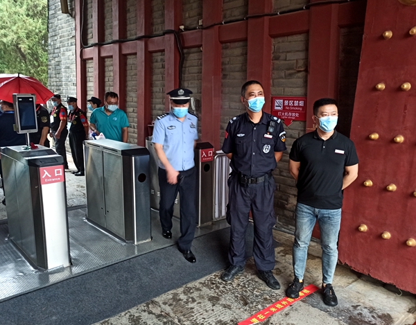 根据景区工作部署,博物馆于登山节前对消防、电气线路及场地安全情况进行了拉网式排查,配合竞委会设置运动员通道和检录区,设置指示标识、警戒线、隔离带;根据竞委会对大型赛事疫情防控的要求,配合进行疫情防控应急处置演练和人员应急疏散演练,模拟演练运动员入场疫情防控检测、发热人员处置,配齐测温枪、消毒酒精、消毒液、喷壶等消杀用品,布置好测温区域、留观点。活动当天安全负责人提前到场进行协调工作,南门设置好运动员通道和缓冲区,北门做好检录秩序维护,确保参赛人员从报到至比赛结束,全部实行闭环管理,全力保障了比赛安全顺利进行。