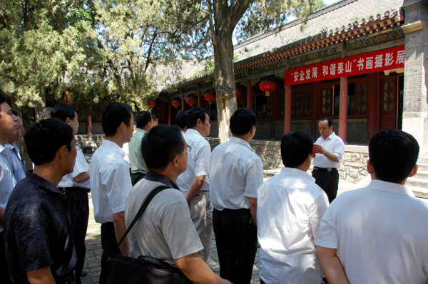 6月22日上午,泰山景区“安全发展、和谐泰山”书画摄影展在岱庙开展,泰山管委会分管领导及景区有关负责人和代表参加了开展仪式。