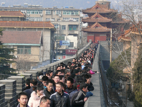 上午九点刚过,前来游玩的市民和游客就陆陆续续从岱庙南、北门涌进院里,演出广场、传统小吃及展示区,大家看演出、尝小吃、赏民俗……,截至下午16时,岱庙首日接待游人超过了15万人,创历年来最高水平(去年首日13万人)。