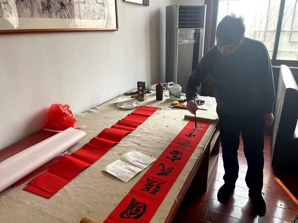 1月27日,泰安市博物馆工会组织开展“挥毫送福字,妙笔迎新春”写春联、送春联活动,邀请馆内书法家为职工群众写春联、送“福”字,将节日的祝福与浓浓的年味送到职工群众身边。