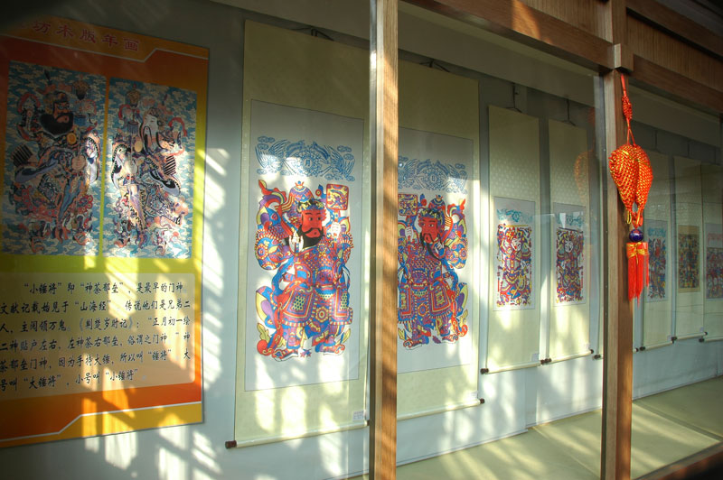 潍坊杨家埠年画为首批国家级非物质文化遗产,始于明代,兴于清朝,同天津杨柳青、苏州桃花坞并称为中国民间三大木版年画。杨家埠年画制作以手工刻版和印刷为主,形象饱满、线条简练、色彩强烈,具有浓郁醇厚的乡土气息和淳朴鲜明的艺术风格。此次展览从潍坊市博物馆馆藏杨家埠年画中精选出60余幅作品,分为除邪、喜庆、戏曲、花鸟四大类题材,充分体现了杨家埠年画的艺术特色。本次展览为游客和泰城市民提供了一个了解年画民俗的平台,取得了较好的社会反响。我馆将陆续推出各类专题展览,以满足游客和泰城市民对传统文化的精神需求。