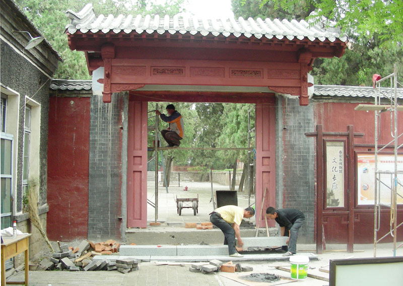 随着“解放思想,改革创新在行动”活动的深入开展,泰安市博物馆加大环境整治力度,对办公院大门和两侧院墙进行了改造,使之与岱庙整体古建筑环境相协调。