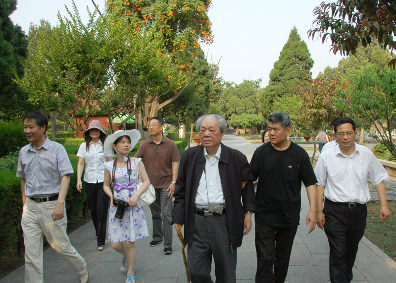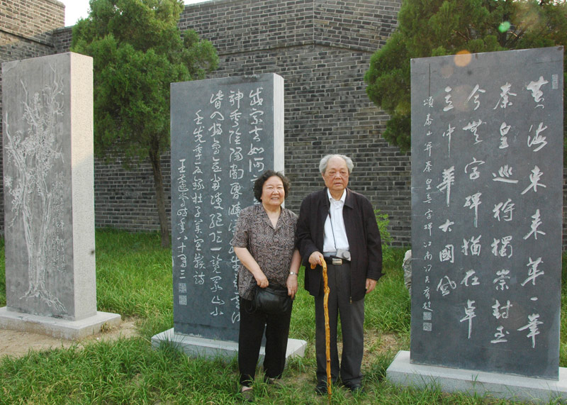 6月21日,中国红楼梦学会名誉会长冯其庸先生一行来我馆参观。参观期间,87岁高龄的冯老兴致勃勃的游览了泰山石刻园,并在自己书写的碑刻作品前合影留念。