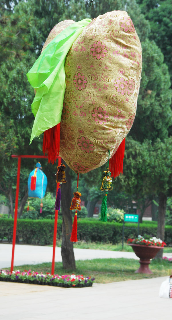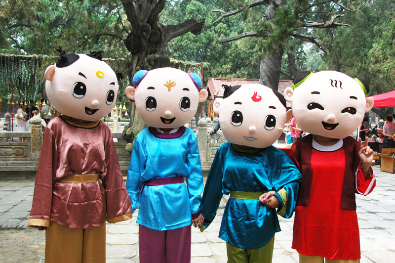 可爱的四喜童子也来岱庙为游客赠送香包及五彩丝带,送上祝福和吉祥