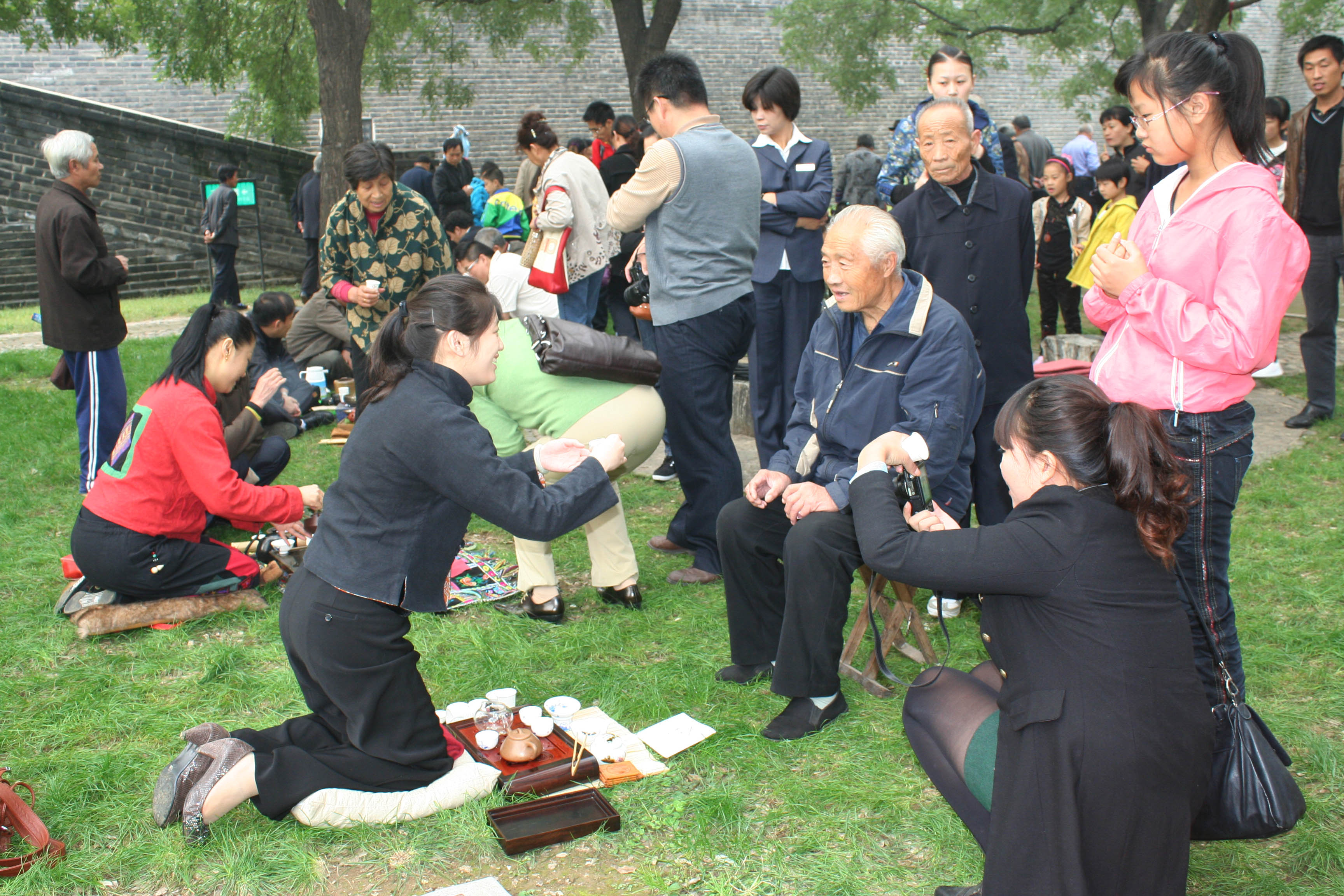 芳草如毡、绿树成荫的庭院内,百余名茶人席地而坐,相约“无我茶会”,切磋茶艺,共饮香茗,为热闹的九九老人节平添一份闲情逸致。