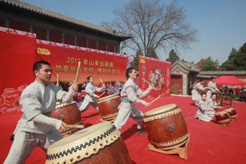 4月2日,随着东岳庙会暨海峡两岸民俗文化交流周的顺利启会,岱庙主会场的近20项活动也相继拉开帷幕。今年庙会可谓活动多多,精彩纷呈。除了近百年来庙会流传的传统娱乐游艺项目外,还开展了包括台湾优人神鼓表演、台湾八家将表演、台湾禅茶表演、台湾小吃一条街、非物质文化遗产展演、动漫文化展示等项特色各异的活动。