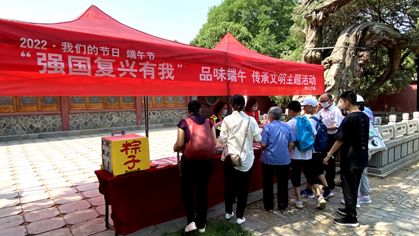 岱庙景区还开展了多项线下活动。在汉柏院,设置特色端午市。将各类粽子、香包等商品进行展示,让游客和市民感受泰山端午特色地域文化以及民俗产品。
