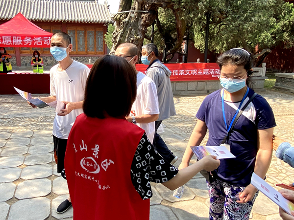 发放宣传册页,宣传泰山文化。