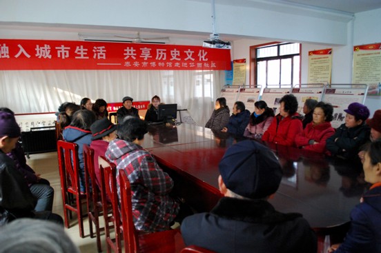 为了推进博物馆建设,进一步加强博物馆的社会服务功能,培养居民热爱社区、热爱博物馆的情怀, 12月11日,博物馆与岱庙办事处岱西社区共同举办“融入城市生活 共享历史文化——泰安市博物馆进社区系列文化活动”,活动邀请了相关泰山学者对泰山25年前申报世界文化双遗产的过程进行了回顾,同时利用展版、影片播放等形式进行了泰山、岱庙的历史文化宣传,让社区居民不用进博物馆,就可以俯瞰历史的风风雨雨,知道自己居住的这片土地蕴藏过千百年的秘密,从而建立社区居民对博物馆的信任感,能真正吸引大众对博物馆广泛和持久的关注度,更能感受到文化的魅力,充分体验“文化之旅”的乐趣。