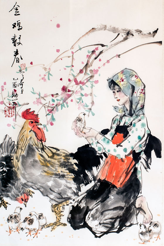 中国美协理事、中国国家画院画家谢志高作品:金鸡报春