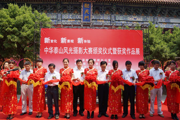 5月19日上午,首届中华泰山风光摄影获奖作品展在岱庙配天门开展。市人大常委会党组书记、第一副主任林华勇,市委常委、副市长刘卫东,山东省人民政府新闻办公室副主任、世界华人摄影学会执行委员和评审委员、中国画报协会副会长、山东省摄影家协会主席 侯贺良,景区党工委书记谭业刚,景区管委会副主任刘慧出席颁奖仪式并为获奖作品展剪彩。