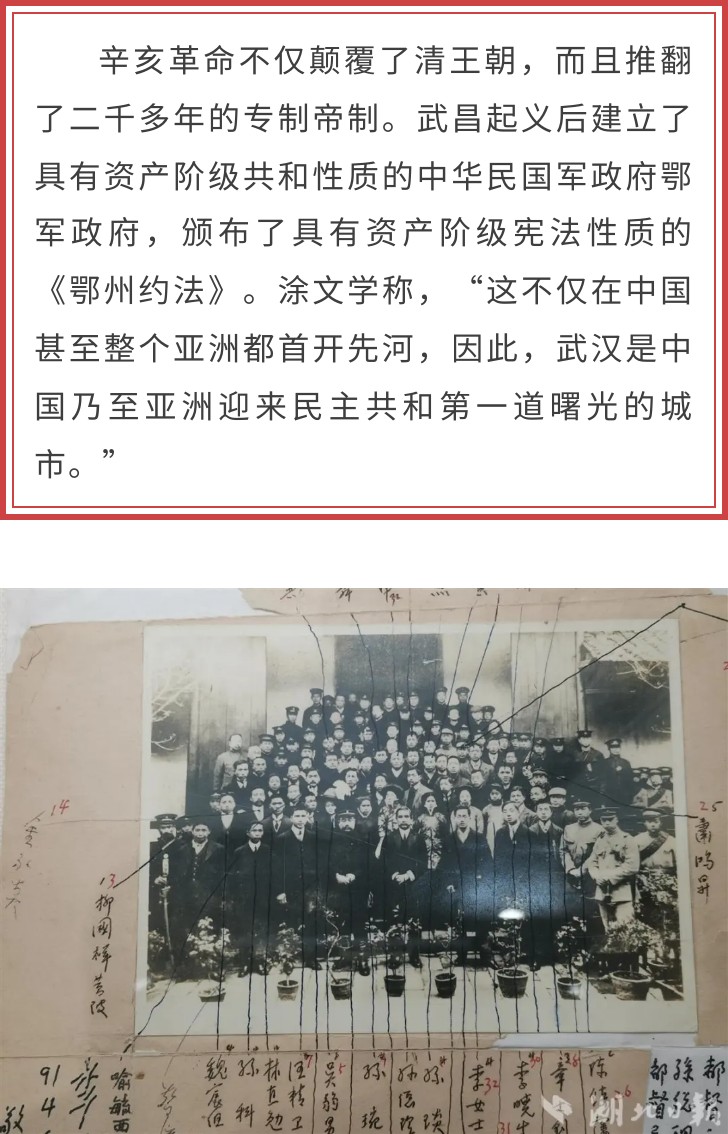 图为:1912年孙中山访鄂时在鄂军都督府门前与湖北军政人员合影
