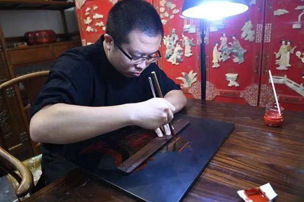 非遗传承大师现场展示雕漆技艺