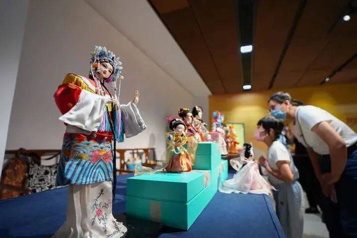 观众在中国工艺美术馆(也称中国非物质文化遗产馆)观看北京绢人工艺品(2022年9月10日摄)。新华社记者 陈钟昊/摄