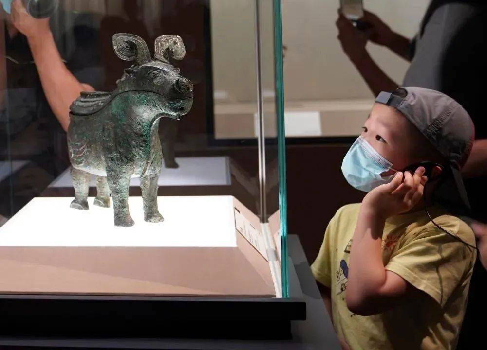 小朋友在上海博物馆举行的“宅兹中国——河南夏商周三代文明展”上参观(2022年7月30日摄)。新华社记者 任珑/摄