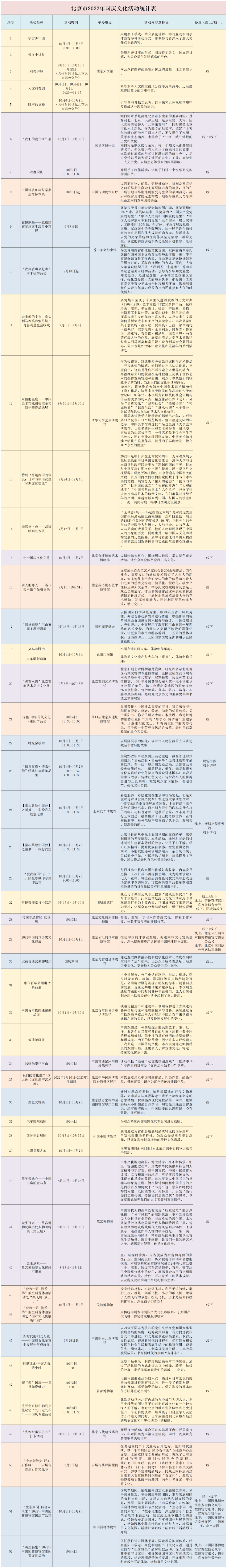 今年国庆节期间,北京地区博物馆将推出50余项文化活动,让我们一起到博物馆看展览、赏文物、做手工,度过愉快的国庆假期~
